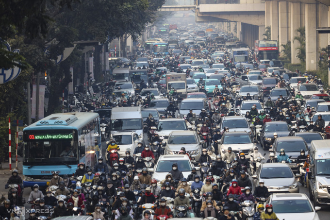 Cảnh ùn tắc trên đường Nguyễn Trãi trong giờ cao điểm tháng 1/2025. Ảnh: Phạm Chiểu