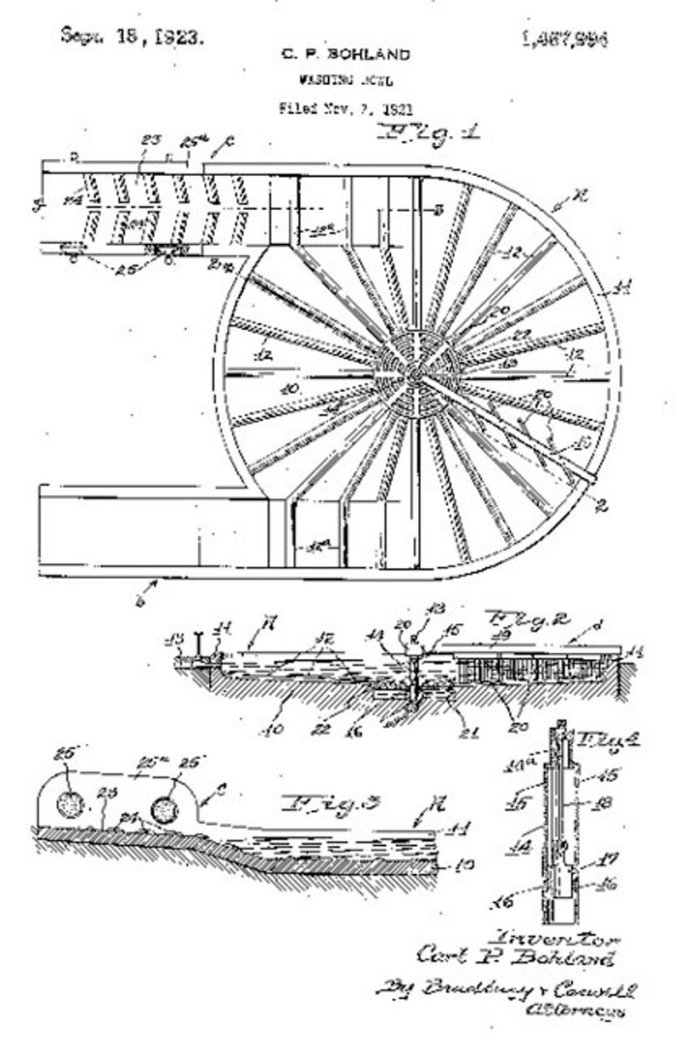 Còn bức ảnh dưới đây từ bằng sáng chế của CP Bohland từ năm 1921. Chiếc bồn bê tông có đường kính 24 m và sâu khoảng 40 cm tại điểm sâu nhất.