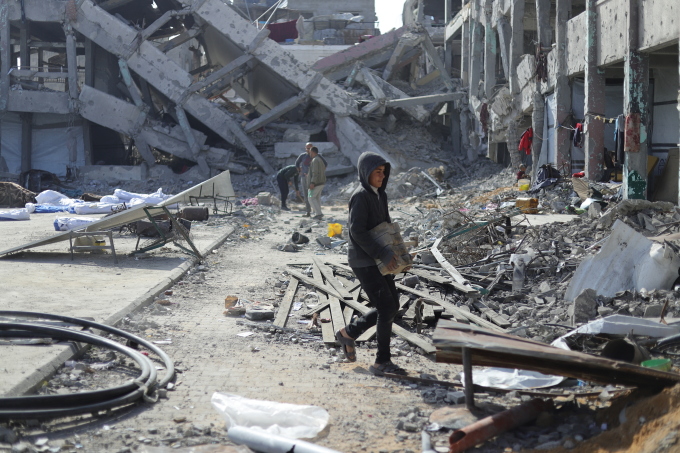 Tại Jabalia và phía bắc Gaza,những khu vực bị chiến tranh tàn phá nghiêm trọng,những người Palestine đi sơ tán đã quay về sau khi lệnh ngừng bắn có hiệu lực ngày 19/1. Họ ở trong lán trại tạm bợ cạnh nhà cửa bị phá hủy.
