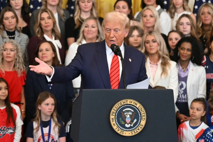 Tổng thống Mỹ Donald Trump phát biểu tại Nhà Trắng ngày 5/2,trước khi ký sắc lệnh cấm người chuyển giới tham gia các môn thể thao nữ. Ảnh: AFP