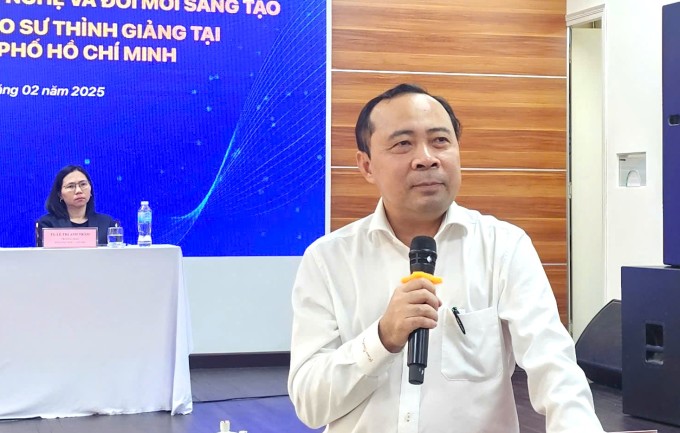 PGS.TS Vũ Hải Quân,Giám đốc Đại học Quốc gia TP HCM,nói về kế hoạch thu hút chuyên gia,nhà khoa học xuất sắc về thỉnh giảng,sáng 7/2. Ảnh: Lệ Nguyễn