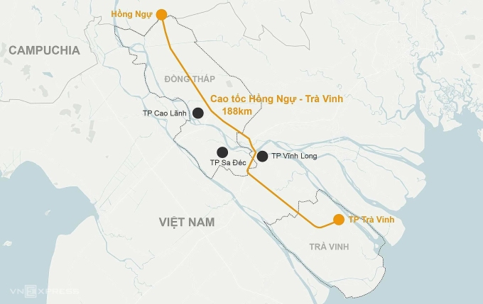 Quy hoạch hướng tuyến cao tốc Hồng Ngự - Trà Vinh. Đồ họa: Khánh Hoàng