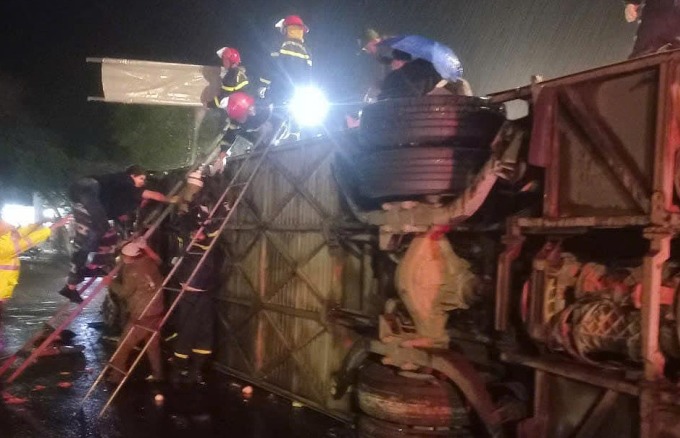 Xe khách lật nghiêng giữa đường Quốc lộ khiến 3 người tử vong