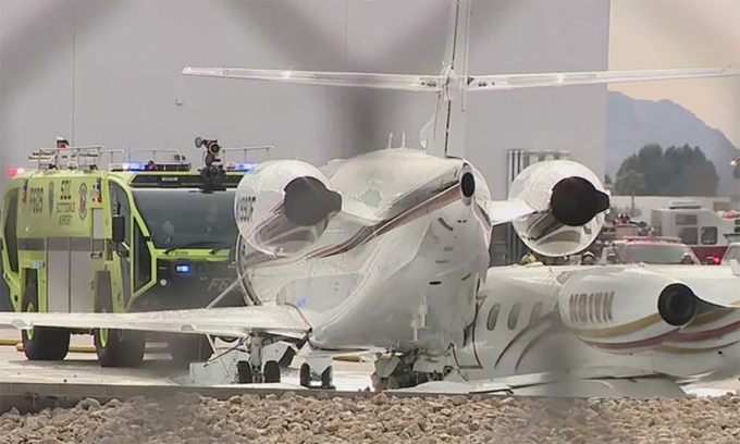 "Một chiếc Learjet 35A chệch khỏi đường băng sau khi hạ cánh và đâm phải máy bay Gulfstream 200 đang đỗ tại sân bay thành phố Scottsdale,bang Arizona",phát ngôn viên Cục Hàng không Liên bang Mỹ (FAA) ngày 10/2 thông báo.