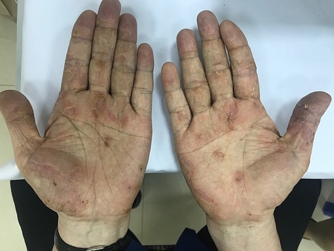 Da một bệnh nhân trầy xước,nhiều nốt ngoằn ngoèo dưới da do nhiễm ký sinh trùng. Ảnh: Phương Thảo
