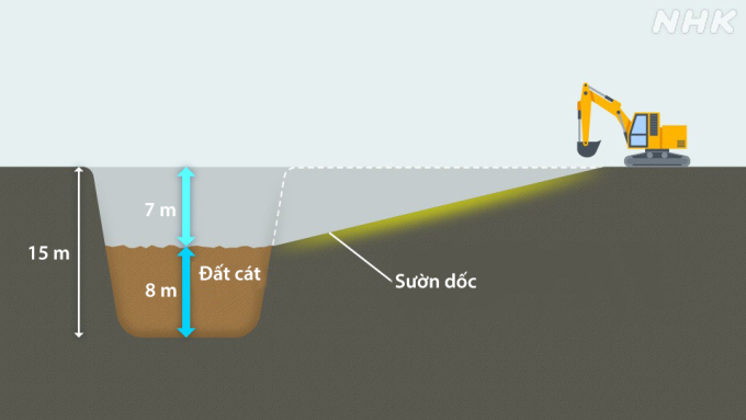 Mô phỏng kích thước hố tử thần ở Yashio,tỉnh Saitama. Đồ họa: NHK