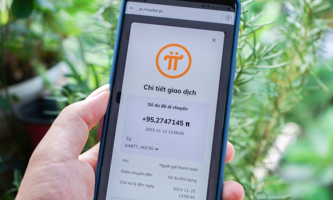 Một smartphone hiển thị giao dịch tiền ảo Pi thử nghiệm vào năm 2023. Ảnh: Bảo Lâm