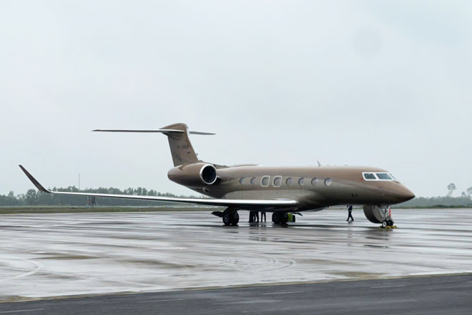Chuyên cơ G650ER có giá gần 70 triệu USD hạ cánh sân bay quốc tế Phú Bài. Ảnh: Vạn An