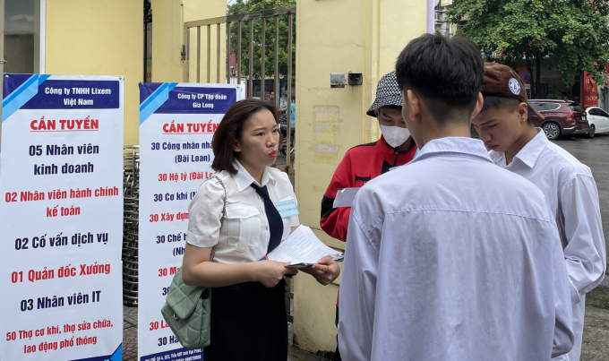 Nhân sự trẻ tìm hiểu thông tin việc làm tại sàn giao dịch việc làm ở Long Biên,Hà Nội năm 2023. Ảnh: Phan Dương