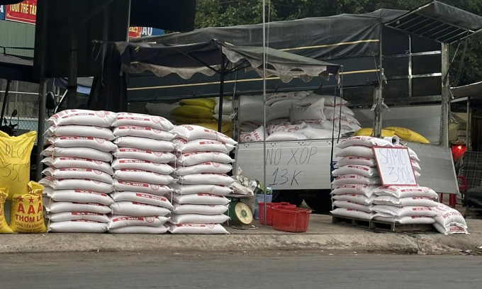 Tiểu thương bán gạo giá rẻ ven đường ở miền Tây