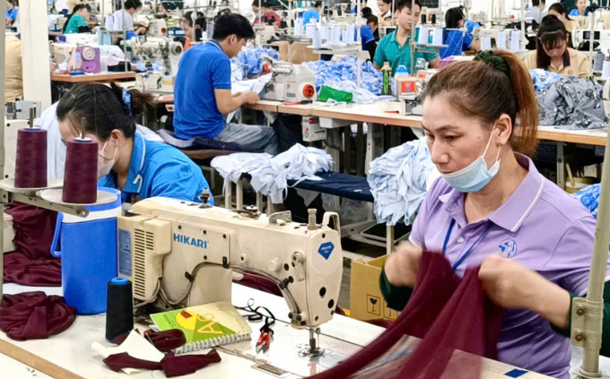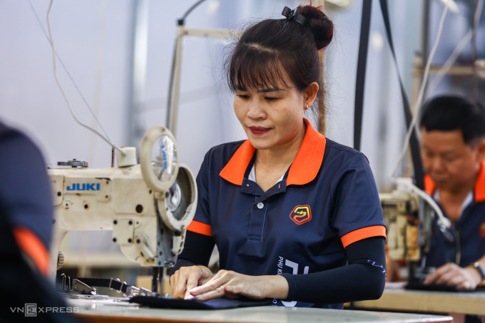 Công nhân làm việc tại công ty may mặc,sản xuất phụ kiện thể thao Polaris,quận Tân Phú,tháng 1/2025. Ảnh: Quỳnh Trần