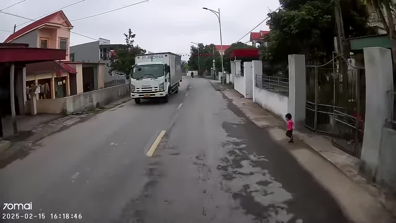 Em bé lao ra đường khi xe container đi tới