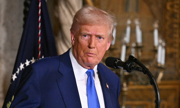 Tổng thống Mỹ Donald Trump phát biểu tại dinh thự Mar-a-Lago ở Palm Beach,Florida ngày 18/2. Ảnh: AFP