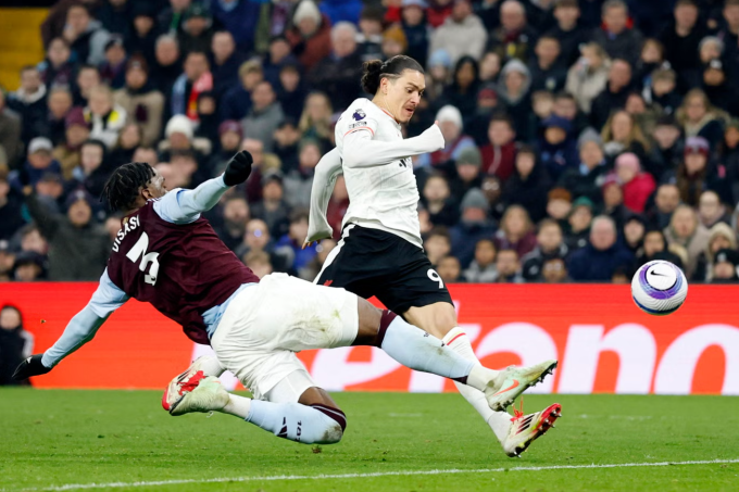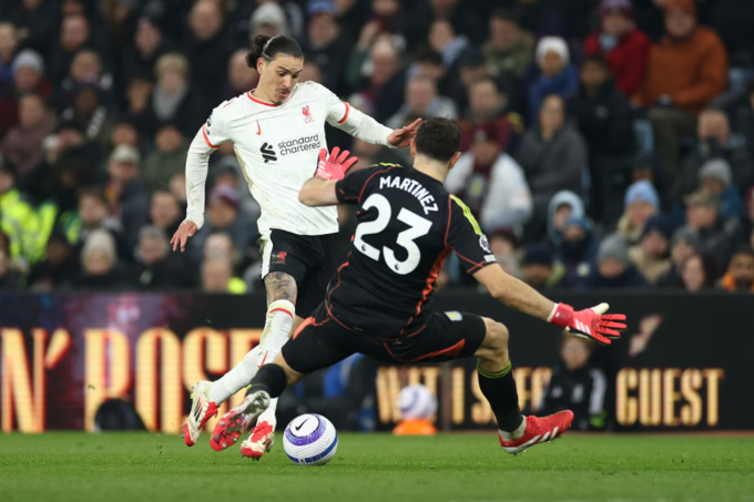 Hôm qua,Nunez vào thay Diogo Jota phút 66. Sau pha bỏ lỡ trước khung thành trống,tiền đạo người Uruguay còn có cơ hội khác ở phút 74. Anh chặn đường chuyền của Tyrone Mings và băng xuống,nhưng thủ thành Emiliano Martinez kịp băng ra,nhoài người ngăn cản. Nếu xử lý tốt hơn,Nunez hoàn toàn có thể bấm bóng qua người Martinez và sút vào khung thành trống.