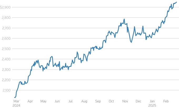 Việc giá duy trì trên 2.950 USD một ounce khiến nhà đầu tư tập trung vào khả năng kim loại quý lên mốc 3.000 USD. Năm nay,giá vàng đã tăng hơn 12%.