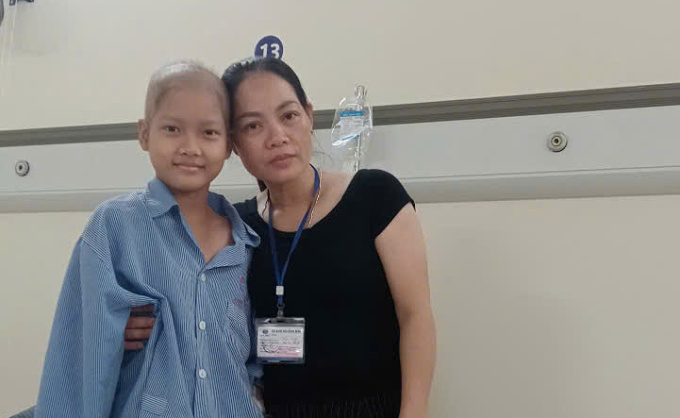 "Khi con khỏe lại mẹ sẽ được về chăm sóc hai em,mẹ không còn phải lo lắng cho con nữa",Vy nói với mẹ. Câu nói của cô con gái hiểu chuyện khiến chị Ngọc không kiềm được nước mắt.