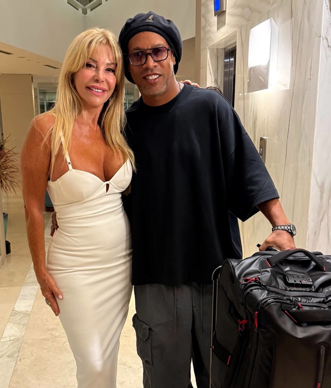 Người mẫu 72 tuổi Graciela Alfano (trái) chụp cùng Ronaldinho tại khách sạn hồi tháng 1/2025. Ảnh: Instagram