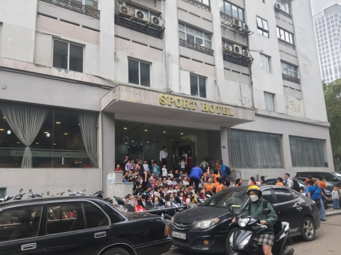 Nhiều người sống trong tòa nhà phải di tản xuống đường. Học sinh trường mầm non được sơ tán sang khách sạn bên cạnh.