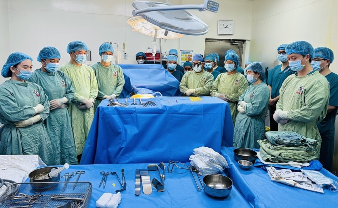 Các y bác sĩ trong kíp lấy gan. Ảnh: Bệnh viện cung cấp