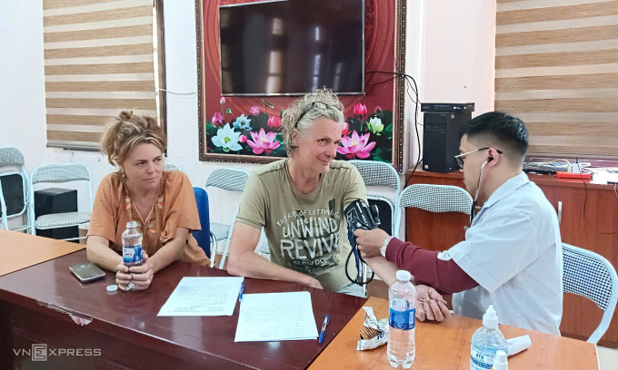 Nhân viên y tế khám sức khỏe cho du khách đi lạc. Ảnh: Đỗ Đình Hùng