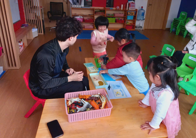 Học sinh trường Mầm non quốc tế Mỹ Rosemont Việt Nam cơ sở Thanh Xuân trong một giờ học khi trường chưa đóng cửa. Ảnh: Phụ huynh cung cấp