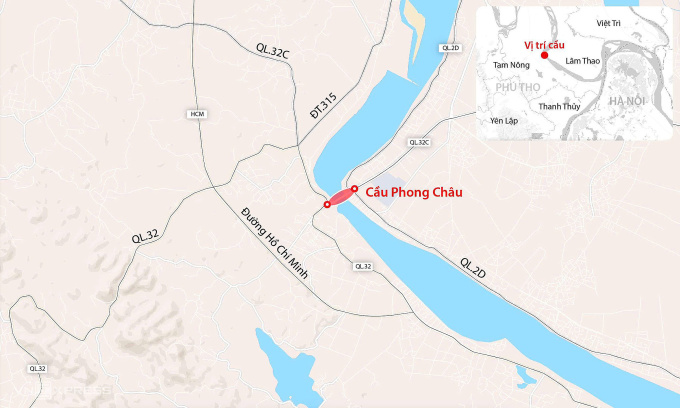 Vị trí cầu Phong Châu bị sập ngày 9/9. Đồ họa: Đăng Hiếu