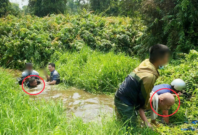 Nhóm bắt cóc (khoanh đỏ) bỏ chạy khi thấy cảnh sát,song đều bị khống chế. Ảnh: Công an cung cấp