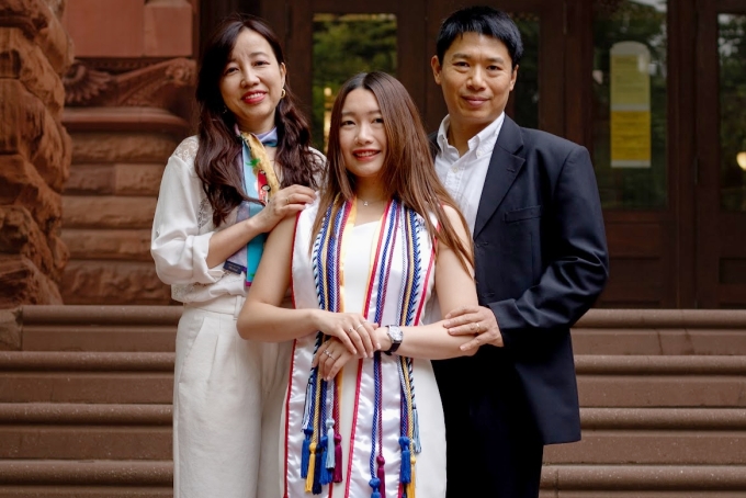 Minh Anh cùng bố mẹ trong ngày tốt nghiệp. Ảnh: Nhân vật cung cấp