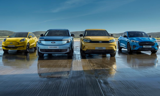 Các mẫu xe điện của Ford ở châu Âu (từ trái sang): Puma Gen-E,Explorer,Capri và Mustang Mach-E. Ảnh: Ford