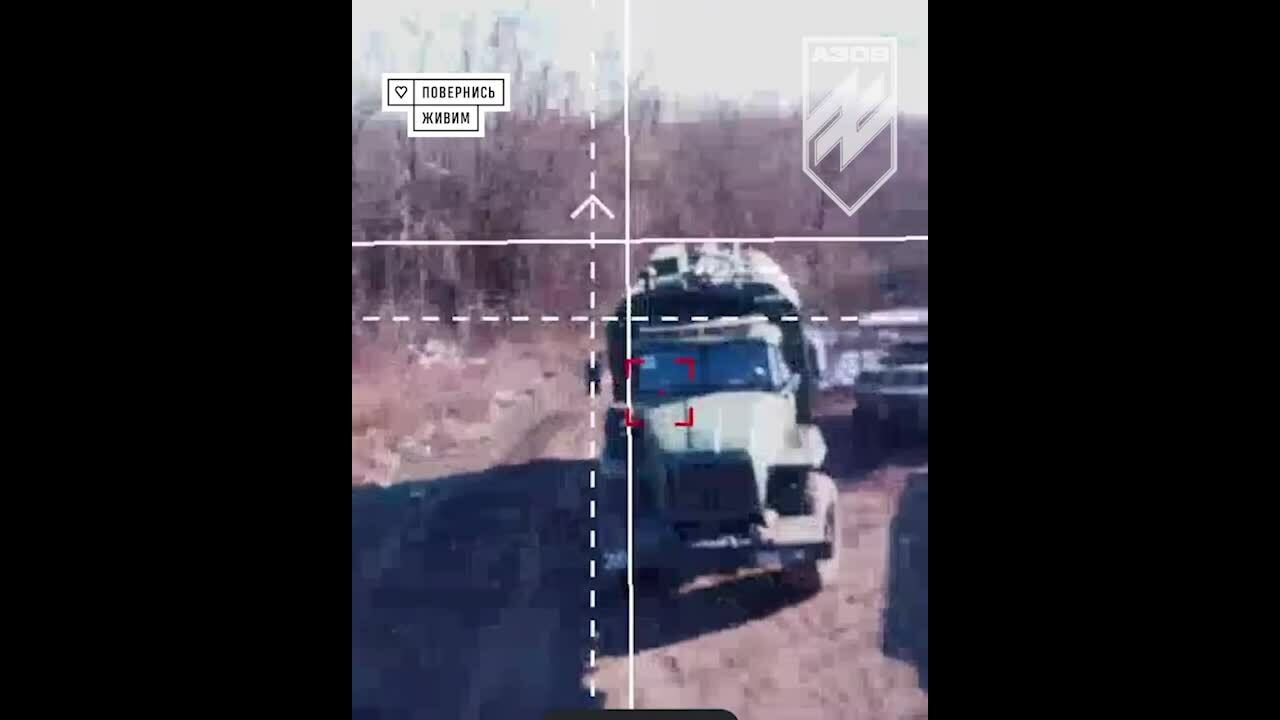 UAV SETH tập kích xe tải quân sự gần thành phố Toretsk ở tỉnh Donetsk trong video đăng ngày 10/3. Video: Lữ đoàn Azov