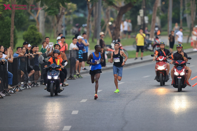 Văn Lai vượt qua Kiptoo,vô địch VM Hanoi Midnight 2024. Ảnh: VM