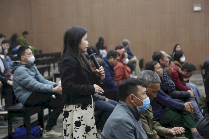 "Nhà để xe làm thế nào để sử dụng được? Nếu sổ đỏ chưa được cấp thì phương án thế nào,mong được nêu rõ cho bà con yên tâm",chị Thời nêu ý kiến.