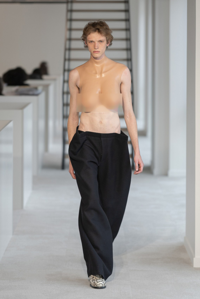 Theo W,thiết kế khiến công chúng bàn tán nhiều nhất trên mạng xã hội là chiếc áo làm bằng latex (mủ cao su nước) màu da người đúc bộ ngực đồ sộ do người mẫu nam Chandler thể hiện. Trên Instagram,nhiều khán giả chỉ trích: "Đây không phải là thời trang","Đừng nên lấy phụ nữ ra làm trò đùa","Không có hứng thú với những thiết kế mang hình ảnh bộ phận cơ thể người".
