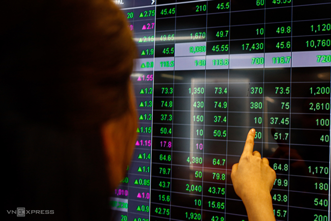 Nhà đầu tư đang theo dõi bảng điện tại một công ty chứng khoán ở quận 1 (TP HCM),tháng 10/2024. Ảnh: An Khương