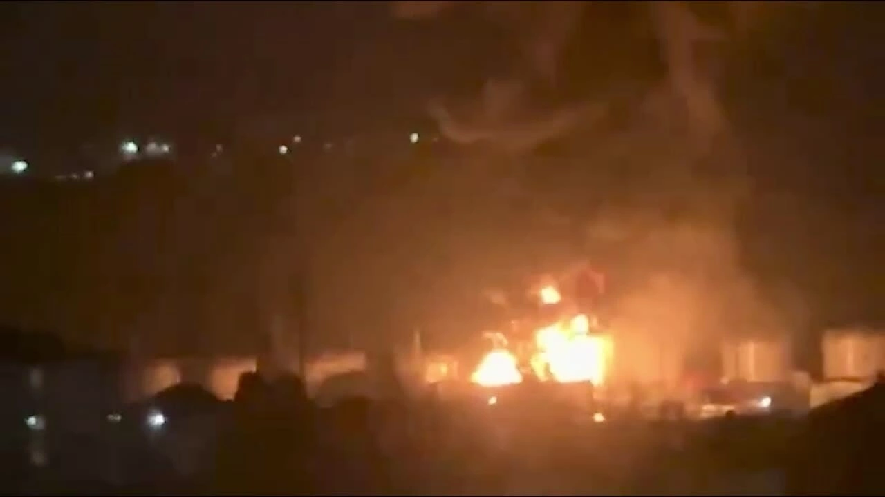 Hỏa hoạn tại nhà máy lọc dầu ở Tuapse hôm 14/3. Video: Telegram/Astra