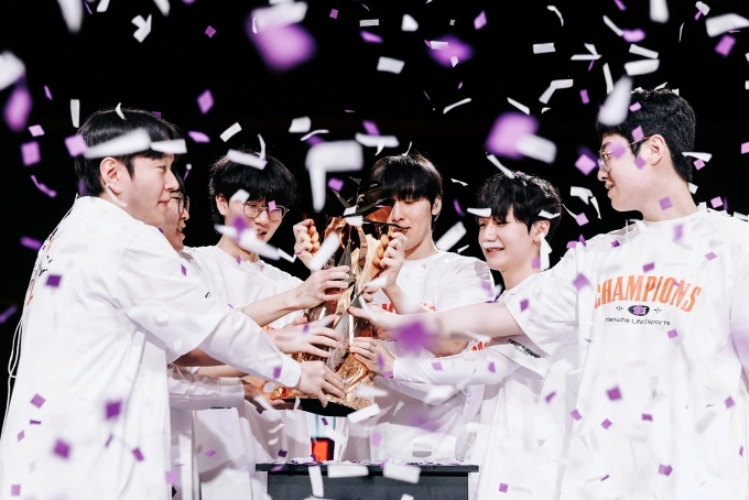 Khoảnh khắc nâng cúp của nhà vô địch HLE tại Chung kết First Stands 2025,tối 16/3. Ảnh: Riot Games