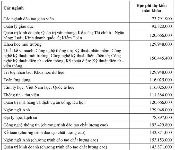 Với các ngành đào tạo giáo viên,trường đưa ra mức chi phí dùng làm căn cứ hỗ trợ cho sinh viên,do nhóm này được miễn học phí theo nghị quyết của Chính phủ.