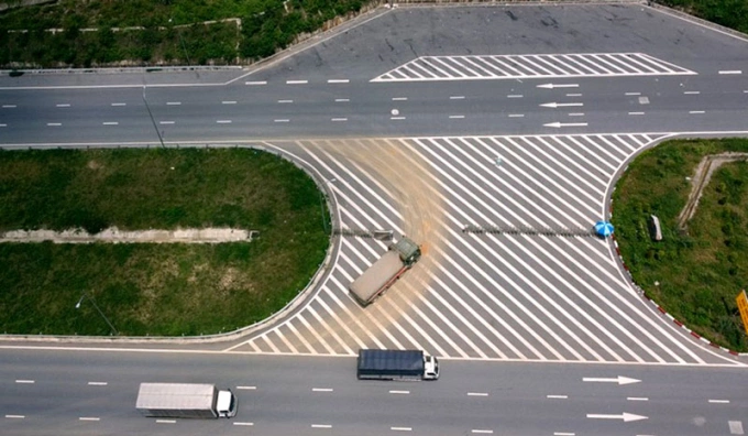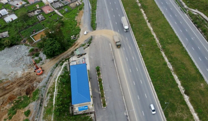 Hàng chục lượt ôtô tải đã "xé rào" đi vào cao tốc Mai Sơn - quốc lộ 45 sau khi múc đầy đất. Ảnh: Lam Sơn