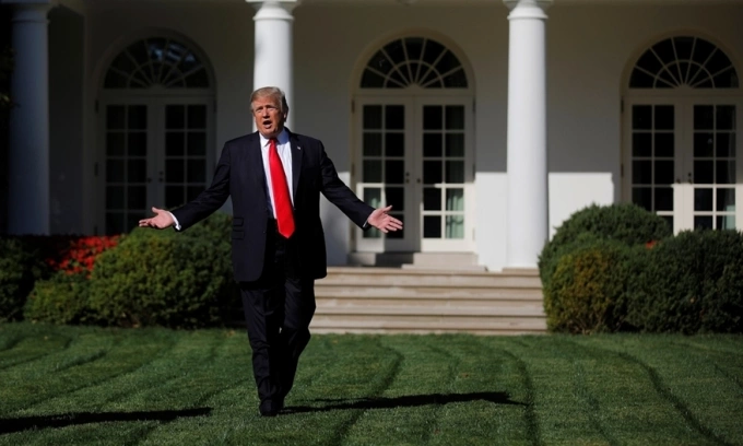 Ông Trump đứng trên bãi cỏ Vườn Hồng hồi tháng 9/2017. Ảnh: Reuters