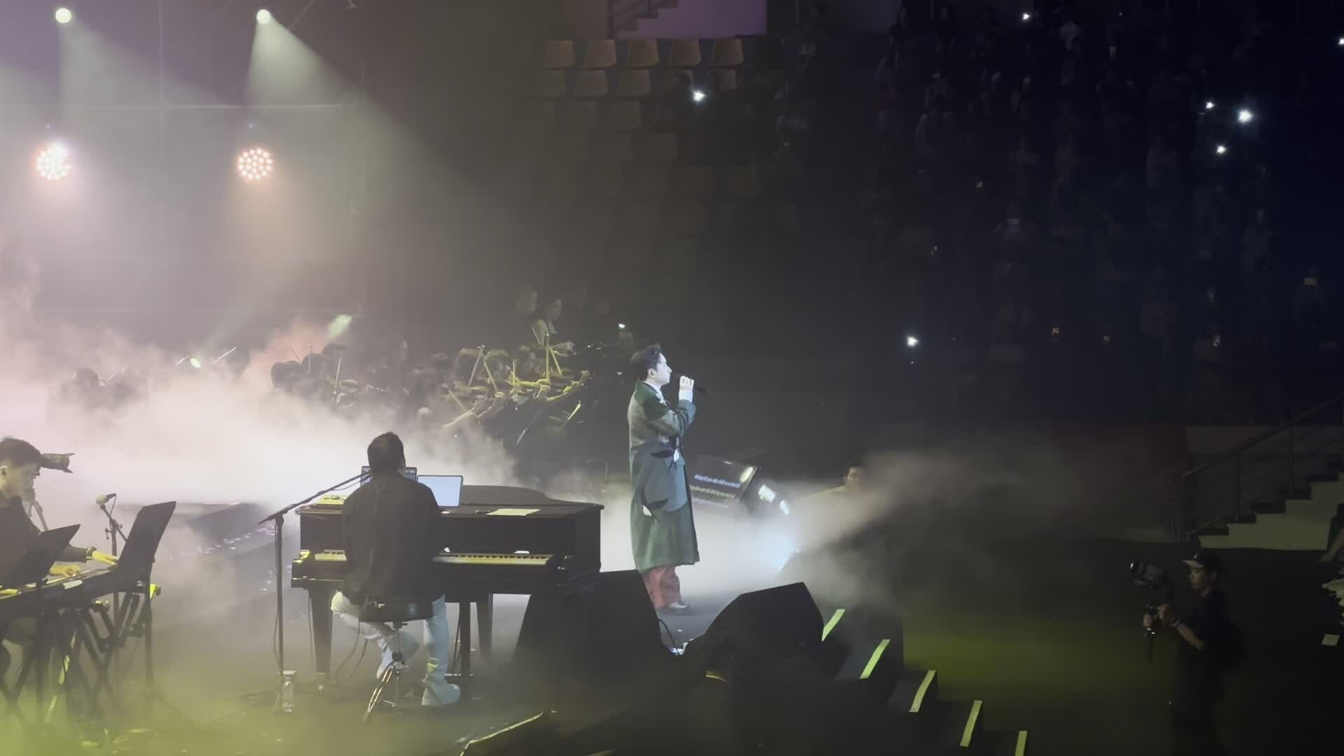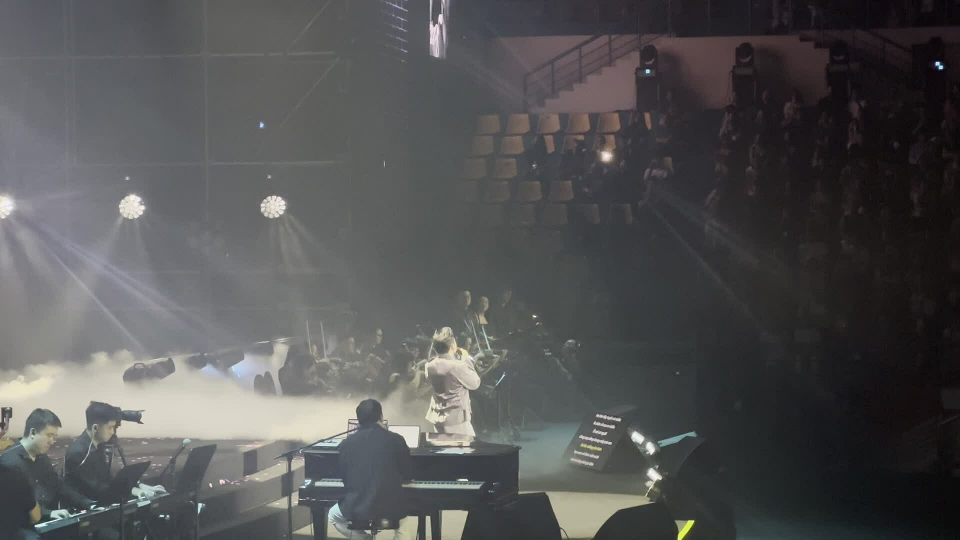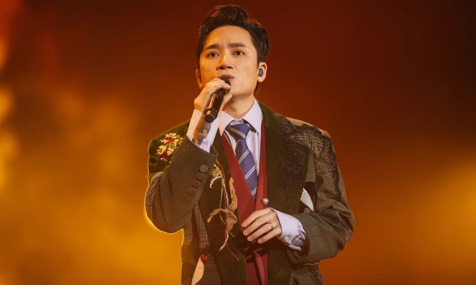 Phan Mạnh Quỳnh trong concert "Chuyến tàu: Mùa xuân",tối 6/4 tại Sân vận động Quần Ngựa,Hà Nội. Trước đó,anh tổ chức "Chuyến tàu: Mùa đông" ở TP HCM,ngày 5/1. Ảnh: Ban tổ chức cung cấp