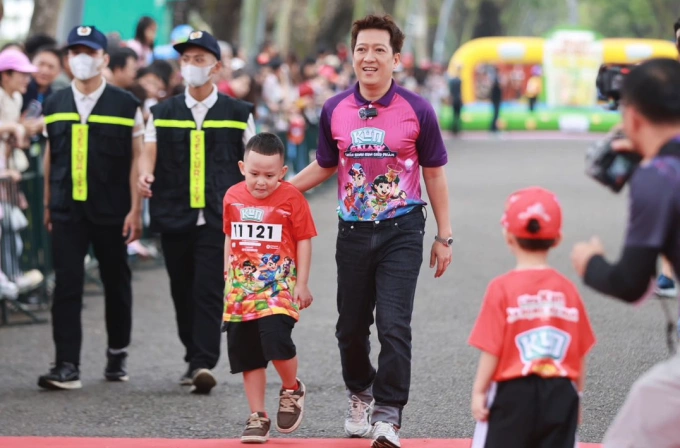 Thời tiết sáng 6/4 khá lý tưởng với tiết trời se lạnh,nhiều mây. Ngay từ 10h,lượt xuất phát đầu tiên dành cho các bé 6 tuổi bắt đầu. Nghệ sĩ Trường Giang - trong trang phục Kun Marathon - xuất hiện bất ngờ,cùng chạy với các em nhỏ,liên tục vẫy tay,vỗ tay,tạo nên không khí sôi động,khiến nhiều bé vừa chạy vừa cười vang. Một số em thậm chí dừng lại bắt tay và nói lớn: "Con sẽ chạy nhanh hơn chú!".