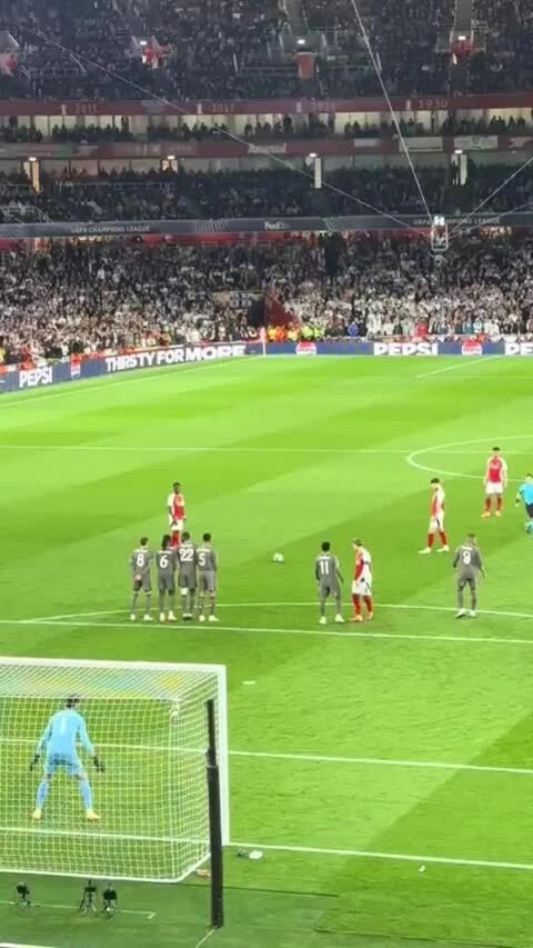 Phút 57,Bukayo Saka đem về quả phạt cho Arsenal chếch bên phải,cự ly gần 30 m. Rice sút sang bên phải hàng rào,đưa bóng hướng ra ngoài rồi xoáy vào khung thành,khiến Courtois không thể cản phá.
