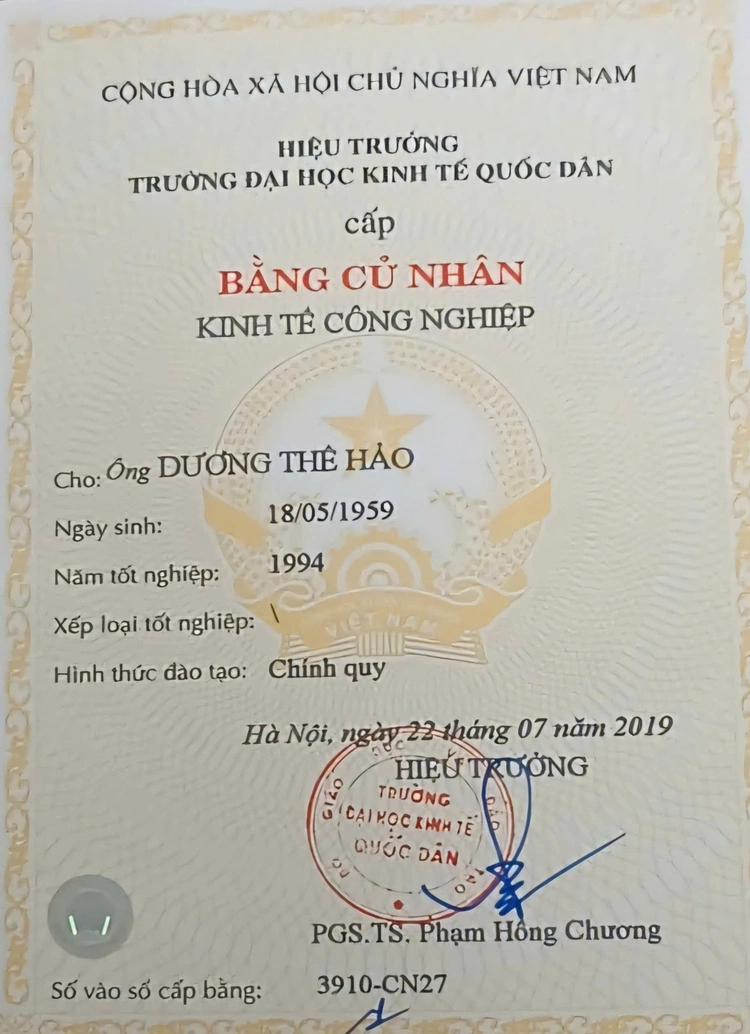 Trả lời VnExpress vào tháng 10/2024,đại diện trường Đại học Kinh tế Quốc dân khẳng định "không giữ bằng và giấy tờ gốc của ông Dương Thế Hảo như ông phản ánh".