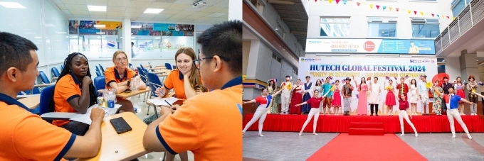 Sinh viên trải nghiệm không gian quốc tế ngay khuôn viên trường. Ảnh: HUTECH
