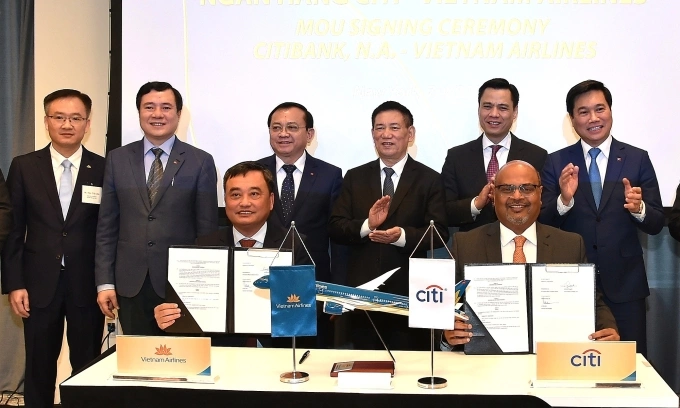 Vietnam Airlines và Citi ký thỏa thuận ghi nhớ tại Mỹ hôm 7/4. Ảnh: Tuấn Lê