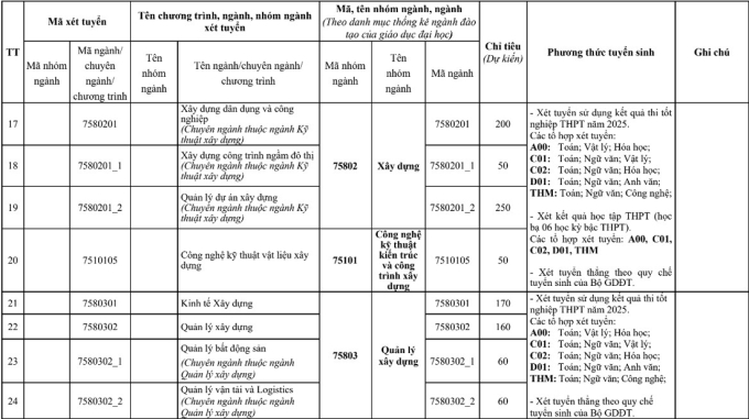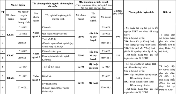 Chỉ tiêu và tổ hợp xét tuyển từng ngành năm 2025 của Đại học Kiến trúc Hà Nội: