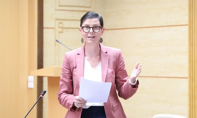 TS. Angela Prat,đại diện Tổ chức Y tế thế giới,phát biểu tại hội nghị. Ảnh: MOH