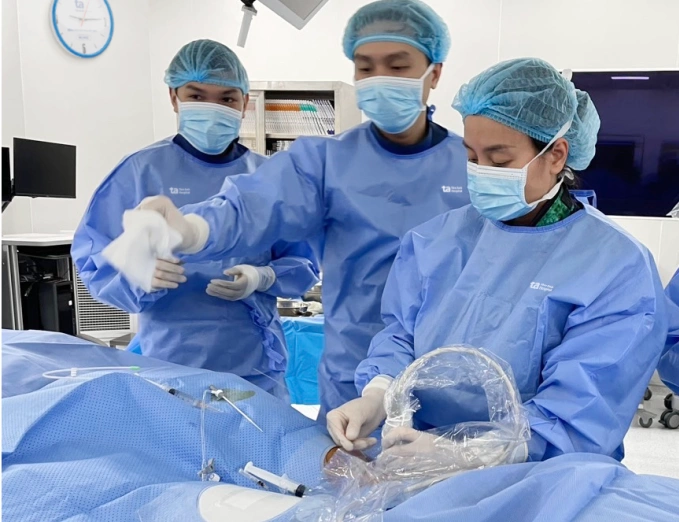 Êkíp can thiệp đặt stent tĩnh mạch cho người bệnh. Ảnh minh họa: Bệnh viện Đa khoa Tâm Anh