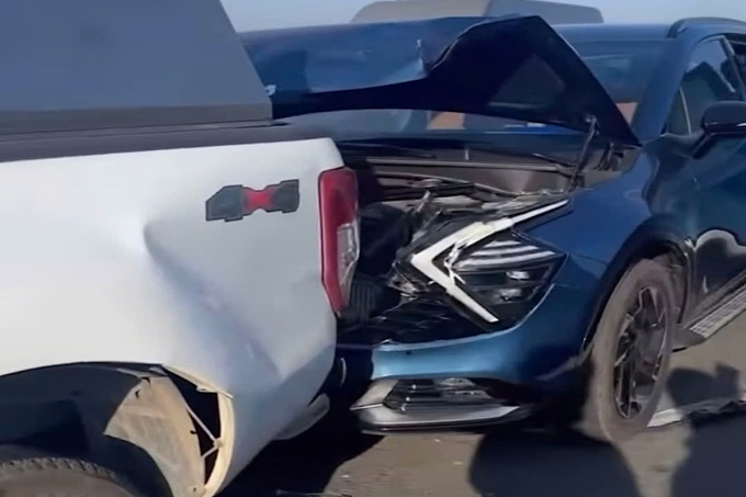 Gần 8h,xe bán tải chạy trên cao tốc TP HCM - Long Thành - Dầu Giây,hướng từ TP HCM về Đồng Nai. Khi gần đến trạm thu phí Long Phước,ôtô bất ngờ tông vào xe 7 chỗ chạy cùng chiều phía trước.