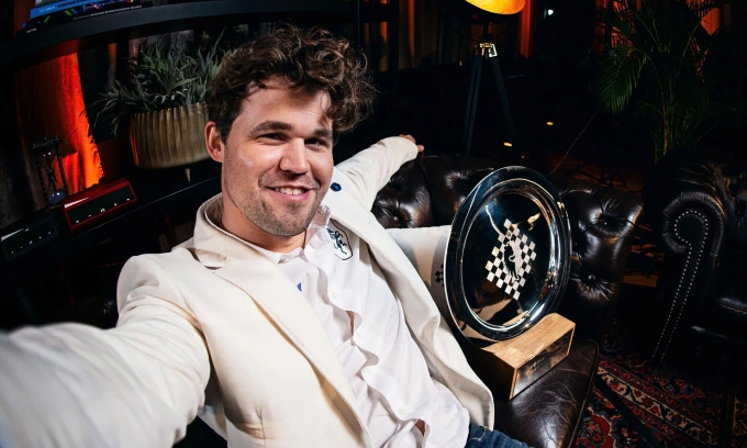 Carlsen cùng danh hiệu Freestyle Chess Grand Slam ở Paris,Pháp ngày 14/4/2025. Ảnh: Freestyle-Chess